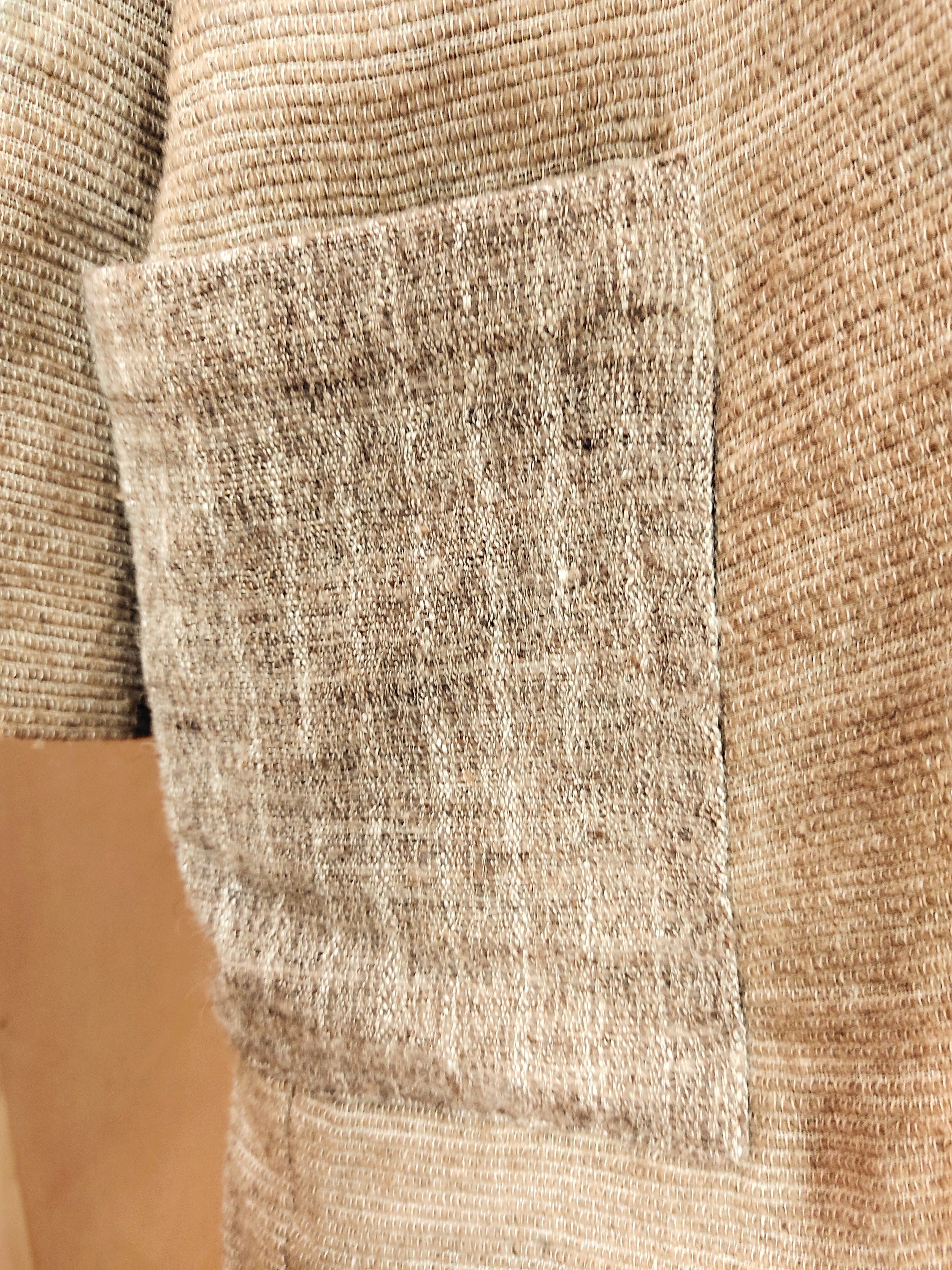 麻のナチュラルな質感と、シルクの柔らかい手触りが上手にミックスされた一点物です。
